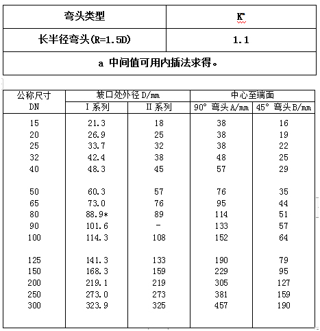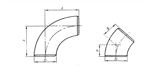 B---45°弯头中心至端面的距离;